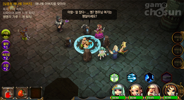 또 던전에서 퀘스트 관련 이벤트가 발생해 NPC끼리 재미있는(?) 대화를 주고받기도 하는데(주로 메인 스토리와 관련된 퀘스트에서 자주 발생), 이를 통해 유저는 게임의 전체적인 스토리를 이해할 수 있고, 예전 90년대 RPG 게임을 체험해본 유저라면 그때의 아기자기한 향수를 느낄 수도 있다.