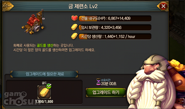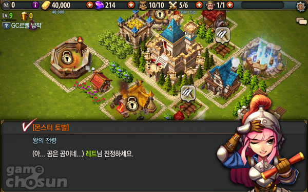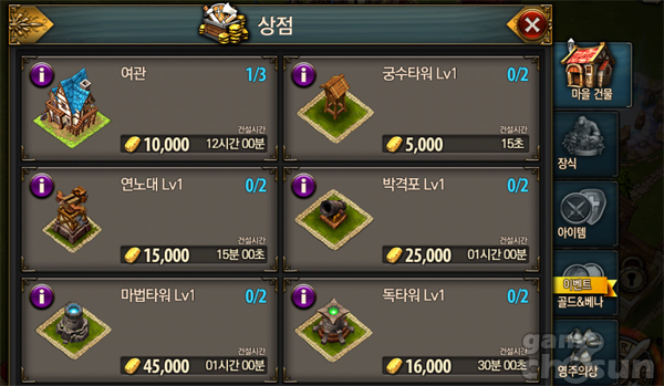 금 제련소를 지어 획득하는 금화량을 늘릴 수 있는가 하면, 밭을 일궈 여러 가지 작물을 키우고 수확한 작물로는 포션을 만들 수 있고, 대장간을 지어 장비를 만드는 등 기존 SNG 게임에서 느낄 수 있었던 아기자기한 재미를 느끼는 것이 가능하다.