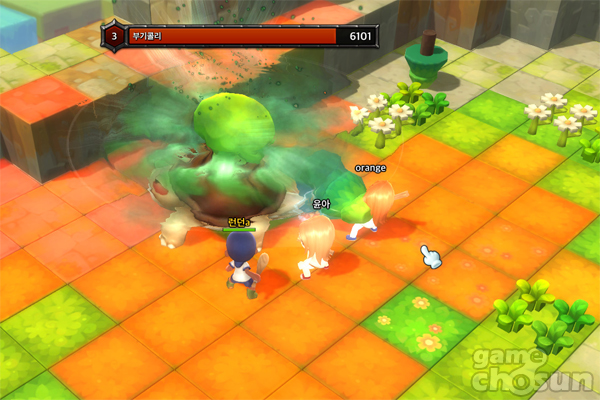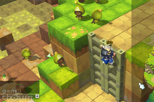 바닥을 살펴보면 정사각형의 블록 형태로 필드가 구성돼있는 것을 알 수 있고, 캐릭터를 중심으로 총 8개의 방향으로 이동하는 것이 가능하다. 또 높이가 다른 곳을 올라갈 때는 점프키를 눌러 이동할 수 있는데, 이때 블록 형태의 필드 구조는 다른 게임에 비해 훨씬 더 높은 직관성을 제공한다.