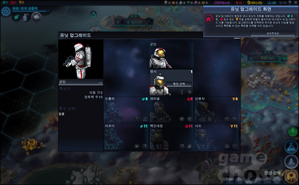 ▲ 성향치가 오르면 유닛을 업그레이드할 수 있다.