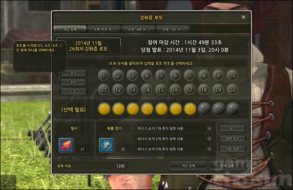 일정시간마다 진행되는 '강화증 로또'도 존재했다. 자신이 원하는 숫자를 선택한 후 등록해두면 사냥 중에 당첨 메시지가 뜨는데, 로또 NPC에게 가면 다양한 상품을 받을 수 있다.