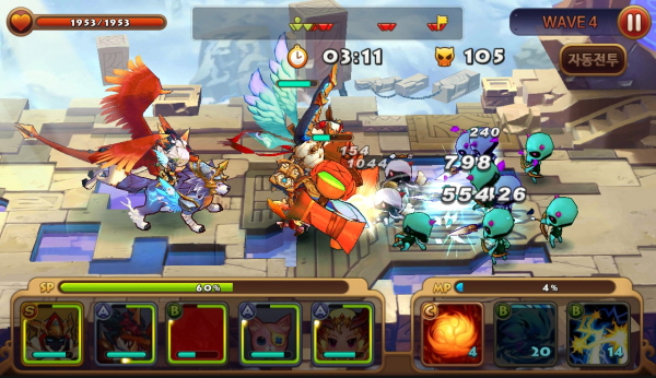 또한, 히어로를 좌우로 움직이며 전투에 유리하게 배치하고, 공격 및 회피, 스킬 사용 등을 통해 보다 역동적인 전투가 가능해졌다.