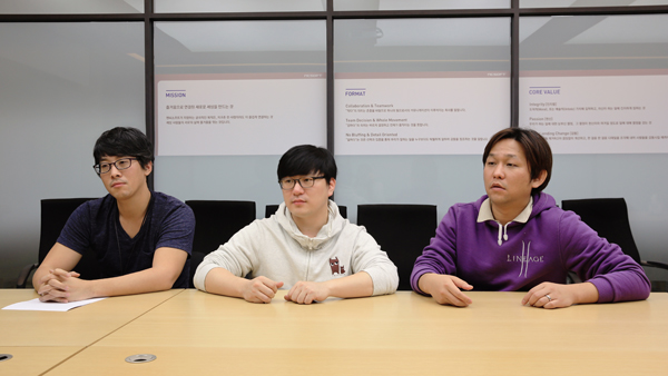 ▲(왼쪽부터) 리니지2개발실 라이브기획팀 최동걸 과장, 김은동 과장, 강정원 팀장