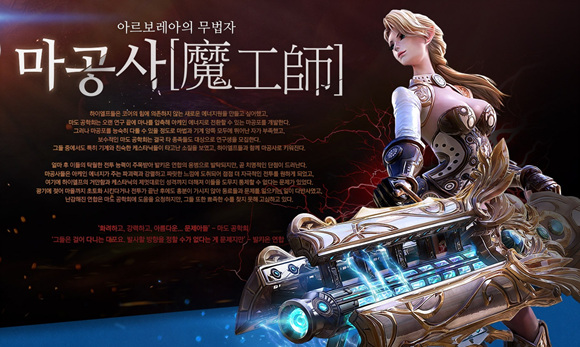 신규 직업 '마공사'는 중화기 무기를 사용하는 원거리 직업으로, 이동하면서 공격을 하는 이른바 '무빙샷' 가능하다는 점과 치료와 위기탈출 등 각종 보조기능을 제공해주는 소형 기계를 소환한다는 점이 특징이다.