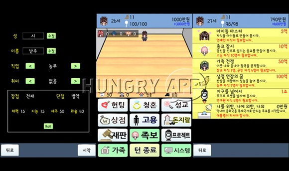 게임의 목표는 명확하다. 헌팅을 통해 미래의 배우자를 만나서 청혼하고, 애를 낳아서 대대손손 번창하는 것이다. 자식을 또 하나의 프로젝트(?)로 접근, 자식 농사까지 책임지는 육아와 인생 설계까지 병행해야 한다.