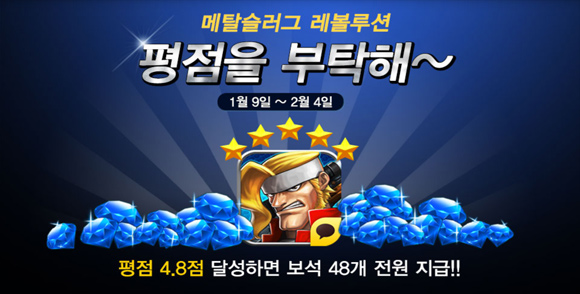 현재 메탈슬러그레볼루션은 게임 내에서 구글플레이 평점 4.8 달성 이벤트를 하고 있다.