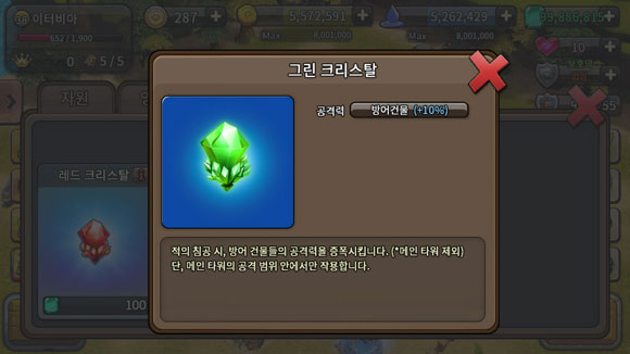 루팅크라운의 메인타워는 '크리스탈'을 활용해 마을의 생산 효율을 높이거나, 공격력, 방어력을 높여 큰 비중을 차지하는 콘텐츠라는 것.