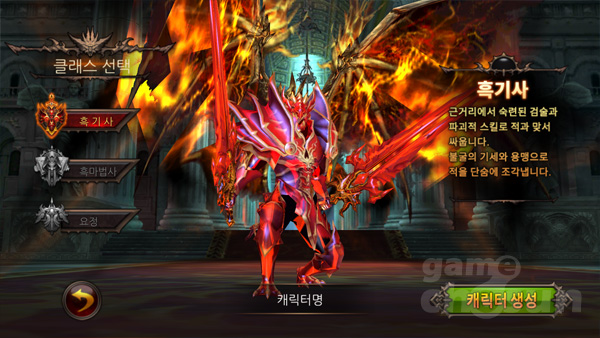 ▲ 캐릭터 생성화면 속 더블 블레이드와 드라곤 갑옷을 장착한 흑기사, 원작의 느낌을 그대로 살렸다