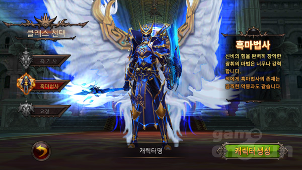 ▲ 전설의 세트를 장착한 캐릭터 생성화면 속 흑마법사