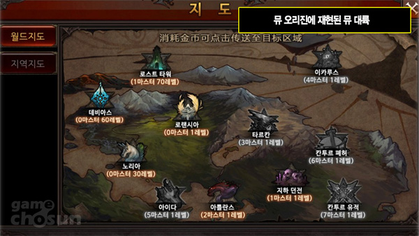 ▲ 원작의 세계관을 그대로 잇는 뮤 대륙 월드