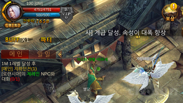 레벨업은 퀘스트 완료 시 주어지는 경험치 보상과 필드 사냥, 던전 공략 시 획득하는 경험치 등으로 성장할 수 있는데, 필드 사냥과 던전 공략을 통해서 더 좋은 상위 아이템을 얻을 수 있다. 던전은 다양한 종류가 준비되어 있는데, 스토리 진행에 따라 입장하는 스토리 던전과 경험치와 골드를 얻을 수 있는 일일 던전, 파티로 공략하는 파티 던전, 목표에 도전하는 무한의 탑까지 유저의 입맛 따라 원하는 던전을 골라 공략할 수 있다.