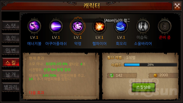 ▲ 캐릭터의 성장은 레벨업 외에도 스킬 성장이 있다