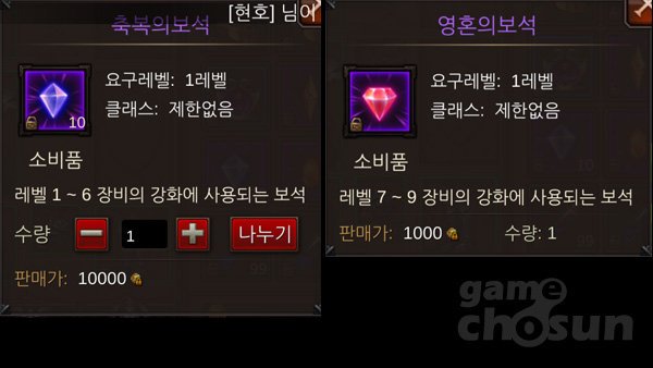 ▲ 아이템 강화에 사용되는 축복의 보석과 영혼의 보석 등을 얻을 수 있다