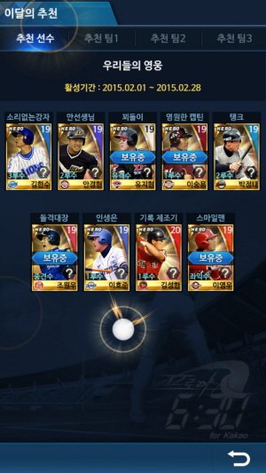 [프로야구 육삼공의 선수카드 모습(좌), 과거 선수들은 이달의 추천 선수로 등장한다(우)]