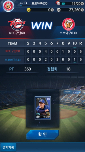 여기에 주어지는 게 한 가지 더 있다. '프로야구 육삼공'에서는 경기를 진행할 때마다 선수카드 한 장이 지급된다. 이 때문에 그 어떤 야구게임보다 손쉽고 빠르게 선수카드를 획득할 수 있다. 이용자의 레벨이 오르면 등장하는 선수카드의 코스트도 높아진다.