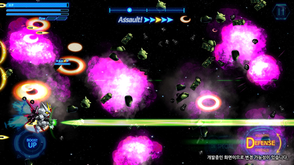 하지만 단순히 위 아래로만 움직이게 된다면 조작의 재미는 떨어질 수밖에 없다. SD건담슈터는 이 같은 단점을 보완할 수 있는 포메이션 시스템이 적용됐다.