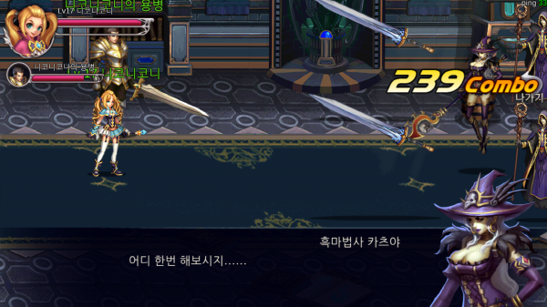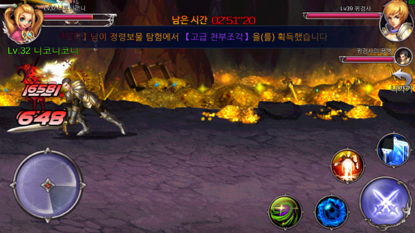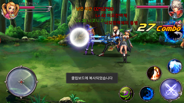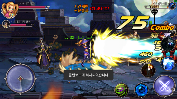 방과후던전은 이 부분에 대해 적절한 타협점을 정해 돌파했다. 모바일의 조작한계를 고려해 대쉬, 점프, 스킬 커맨드 같이 구현하기 까다로운 조작은 과감히 삭제했다. 좌측에 이동, 우측에 스킬만 배치해서 엄지손가락으로도 적당한 액션이 가능하게 했는데 그래도 지상콤보, 공중콤보 등 상황에 따른 콤보도 시전할 수 있다.