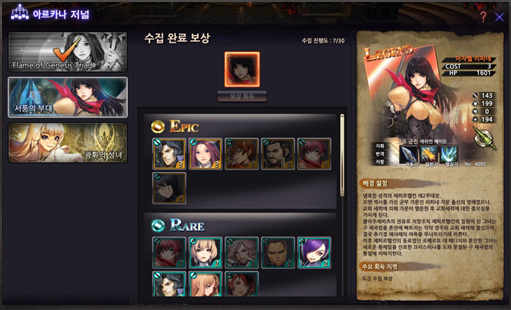 다양한 캐릭터를 수집하는 구조, 중앙 맨위 캐릭터가 해당 액트 주인공 캐릭터