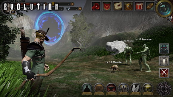에볼루션은 이동은 콘솔게임과 비슷한 양상을 띄지만 전투는 턴제 RPG 방식으로, 이동을 하면서 몬스터와 부딪히면 전투에 돌입하게 된다.