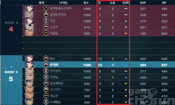 점수판은 독특했다. 타 FPS 게임들과는 다르게 플레이어의 킬/ 데스/ 어시스트를 기록하고 각종 상황을 확인할 수 있는 상황판에서 플레이어 데스 기록이 나타나지 않는다. 단지 자신의 기록이 현재 상승세인지 하락세인지를 확인하는 화살표로 표시된다. 따라서 자신이 잘하지 못하더라도 다른 플레이어들의 눈치를 보지 않으면서 플레이할 수 있다.