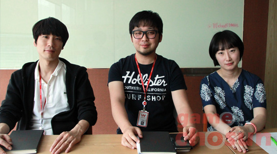 ▲ (좌측부터) 웹젠 아크로드2 이범용 개발팀장, 이규철 PD, 김다예 PM