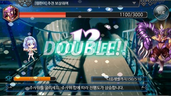 만약 주사위를 굴려 합이 5가 나오면 500의 대미지가 들어가는 식이다. 이때 두 개의 주사위가 같은 숫자가 나올 경우에는 더블이라고 해서 2배만큼의 대미지가 들어간다. 예로 두 개의 주사위 모두 2가 나왔다면 합이 4이므로 4의 두 배인 8 즉 800의 대미지가 들어가게 되는 것이다.