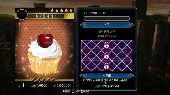 적을 처치했다면 금화나 경험치 이외에도 보상으로 주어지는 4개의 카드 중 하나를 고를 수 있다. 카드 중 하나는 스테이지에 따라 나오는 5성급 이상 리더 카드이며 나머지 3개는 리더급 카드에게 먹이면 호감도를 얻을 수 있는 음식 카드이다. 당연히 음식 카드 확률이 높기 때문에 꾸준히 플레이 해야하는 근성도 필요하다.