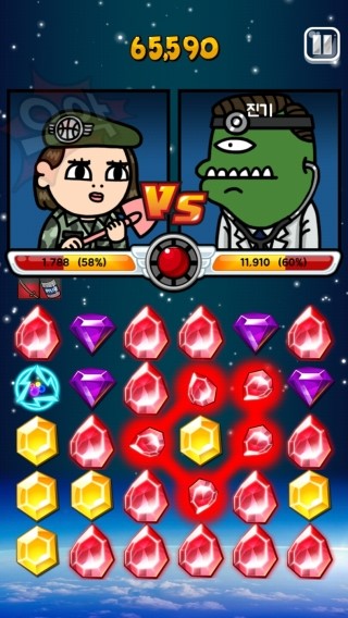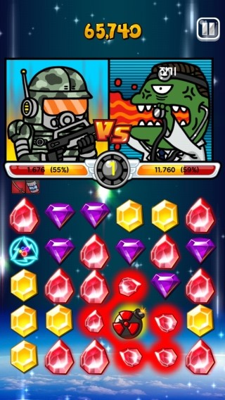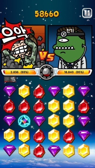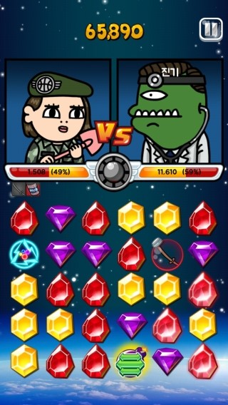 침공을 위한 공격은 당연하게도 퍼즐로 구성돼있다. 화면 아래 쌓인 색색의 블록을 움직여 2개 이상 연결하면 되는 간단한 구조의 룰로 상하좌우는 물론 대각선도 상관없이 연결되기 때문에 누구나 1분만 비벼보면 게임의 특징을 파악할 수 있다.