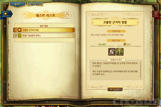 ▲ 퀘스트와 협회 임무 등은 책처럼 확인할 수 있다.