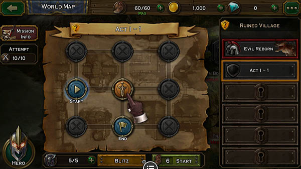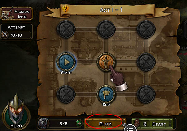 ▲ 전투는 최근 여러 모바일게임에서 지원하는 '소탕' 기능이 제공된다. S등급으로 클리어한 사냥터에 한해 게임 내 블리츠 버튼을 통해 보석을 소모해 바로 전투 결과값만 얻을 수 있다.