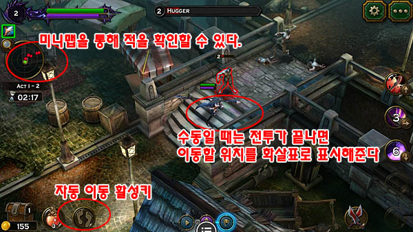 ▲ 엔젤스톤의 UI는 매우 직관적이다. 자동 이동 및 전투도 지원하며 작은 화면에서도 게임의 진행과정을 쉽게 살필 수 있도록 디자인됐다.