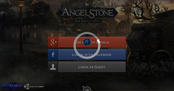 ▲ 엔젤스톤 1차 CBT 버전 타이틀 화면, 로그인은 구글+와 페이스북을 지원한다.