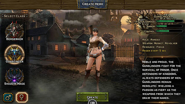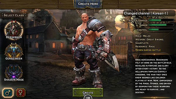 ▲ 엔젤스톤에서는 버서커, 건슬링거, 쉐도우 메이지 등 3직업 남녀 캐릭터가 제공된다.