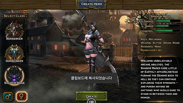 ▲ 게임 로딩화면. 이번 리뷰는 쉐도우 메이지 여성 캐릭터로 플레이했다.