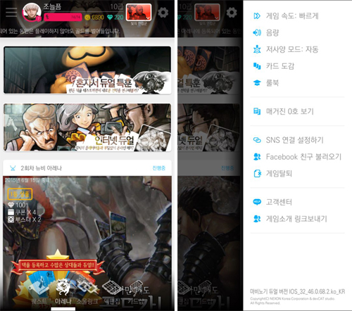 '마비노기듀얼'의 튜토리얼을 마치고 마치 SNS(사회관계망서비스) 어플리케이션을 실행한 듯 단순하면서도 깔끔하게 배치돼 있다.
