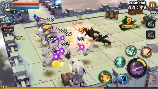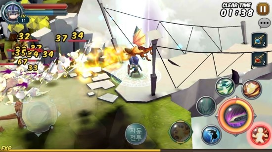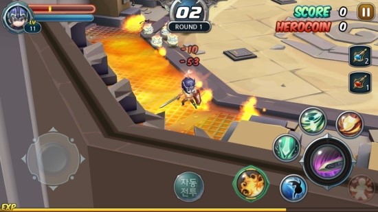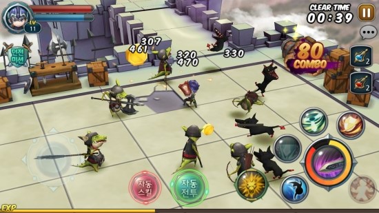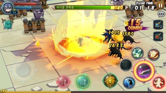 전투 방식은 지극히 간단하다. 하단 왼쪽의 방향키를 이용하여 이동하고 하단 오른쪽 메뉴에서 스킬을 골라 사용할 수 있다. 스킬은 캐릭터별로 다수의 적을 한꺼번에 상대할 수 있게끔 특화돼있어 언제 사용하느냐에 따라 던전 난이도가 결정된다.
