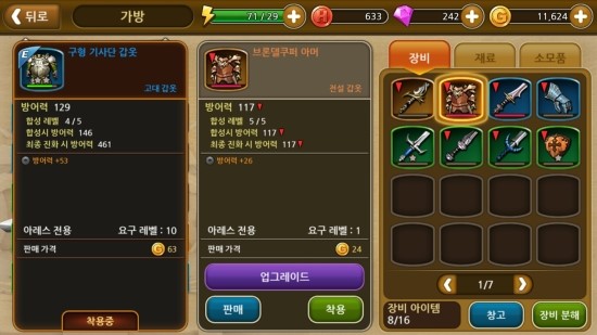 예를 들어 일반 등급인데 고대 등급보다 판매시 많은 골드를 얻는 아이템이 있는가 하면 고대 등급인데 희귀 등급보다 공격력이 낮은 아이템도 있다. 즉 겉보기에 부족해보이는 아이템이라도 충분히 확인하고 처분하는 것이 좋다.