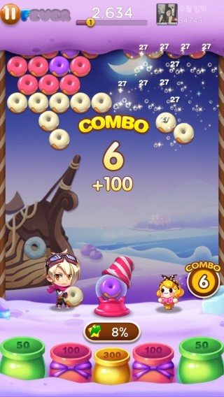 지금부터도넛은 화면 아래 있는 대포로 도넛을 발사해 위에 있는 도넛에 맞추는 것이 목표. 이 때 같은 색 도넛이 3개 이상 연결됐다면 그 도넛들은 모두 사라진다. 이 방식은 3세 어린이부터 구순 노인들까지 1분만 배우면 그자리에서 플레이할 수 있을 정도로 간단하다.