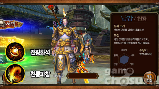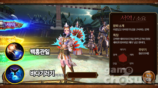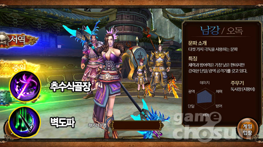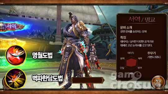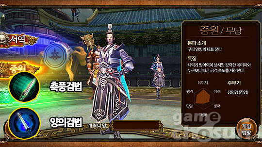 ▲ 문파 고유의 능력치와 특수스킬 그리고 무기의 차이점을 파악하자