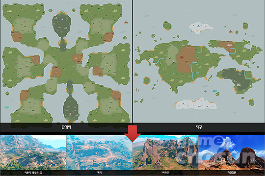 ▲ 신규맵 '판게아(좌)'와 기존맵 '지구(우)'