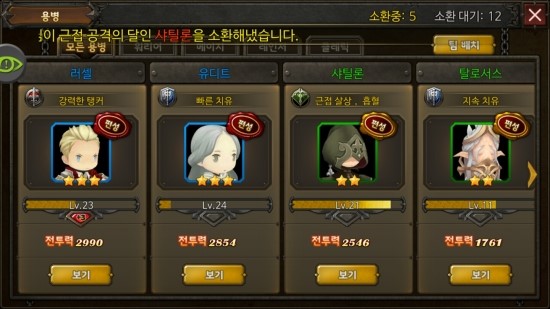 용병 또한 마찬가지로 워리어, 메이지, 레인저, 클레릭 포지션으로 나누어져 있으며 각자 다른 스킬을 보유하고 있어서 그 역할이 조금 더 세분화되어 있다. 같은 원거리 레인저 포지션이라고 하더라도 단일 타겟을 집중 공격하는데 특화된 용병이 있는가하면 다수의 적을 동시 공격하는 원거리 레인저도 존재하는 식이다.
