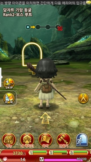던전입장은 왼쪽 오른쪽 화살표만 선택해 입장이 가능하고 문 표시가 있는 곳으로 이동하면 비로소 몬스터와 전투를 벌일 수 있다.