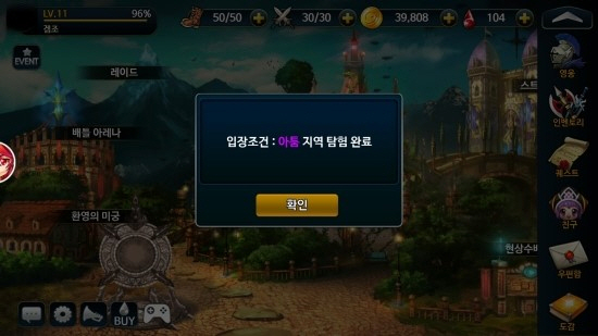 차원의 틈, 배틀 아레나, 현상수배까지는 제법 쉽게 오픈할 수 있지만 레이드와 환영의 미궁, 영웅의 전당을 즐기려면 제법 시간 투자가 필요하다.