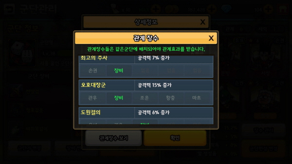 ▲ 장수의 강화나 레벨업은 없지만 장수의 조합을 통해 추가 능력치를 획득할 수 있다.