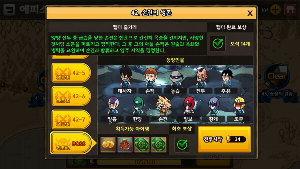 '삼국전투기'의 ‘에피소드’ 모드는 군단 하나를 사용해 웹툰의 스토리에 따라 전투를 진행하도록 구성돼 있다. 군단을 성장시키고 장수를 획득하는 가장 기본적인 콘텐츠로, 세 군단을 적절히 이용하면 지속적인 플레이가 가능하다.