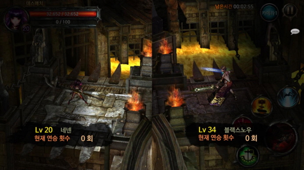 ‘데스매치’는 러스티블러드의 PvP 시스템으로 다른 유저들과 실시간으로 1:1 전투를 진행할 수 있다. 실시간 PvP인 만큼 PC게임의 PvP에서 느낄 수 있었던 미묘한 조작이나 심리전을 모바일에서 맛 볼 수 있는 것이 특징이다.