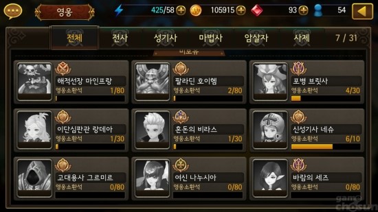 이처럼 원더5마스터즈에서는 직업별로 존재하는 다양한 영웅의 조각을 다양한 방식으로 전투를 펼칠 수 있다.