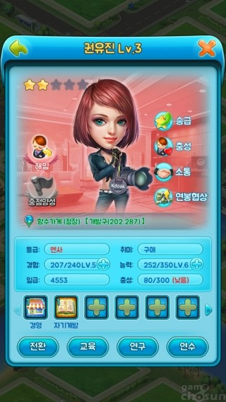 또한 연수를 통해 해당 직원의 레벨을 올릴 수도 있는데 이러한 직원 양성 활동은 해당 점포의 일일 매출량을 올려주기 때문에 신경써야 한다.