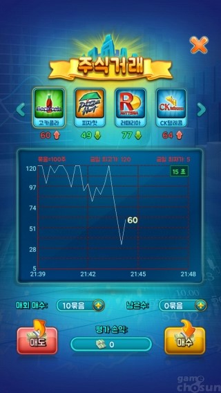 한 번 매수할 때마다 10묶음씩 구매할 수 있으며 15초 이후에 다시 구매할 수 있다. 그러나 15초 이후에는 주가가 올라가거나 떨어지는 등 주가가 자주 변동되므로 주가가 30~40 이상으로 올랐다면 구매하지 않는 것이 좋다.