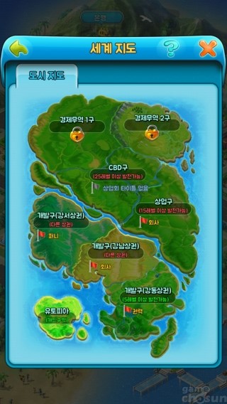 개발구에서 첫 점포를 개설 후 인근에 점포를 건설할 땐 이전에 개설한 점포화면에서 왼쪽 상단에 손잡고 있는 마크를 눌러 어떤 점포를 세우는 것이 좋은지 확인 후 개설해야 한다.